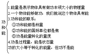 (1)功和能是不同的物理量。能是表征物理运动状态的物理量,物体运动状态发生变化,物体运动形式发生变化,物体的能都相应随之变化;做功是使物体能量发生变化的一种方式,物体能量的变化可以用相应的力做功量度。