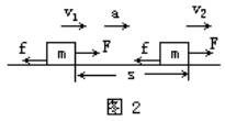 如图所示,一个物体的质量为m,初速度为v1,在与运动方向相同的恒力F的作用下发生一段位移s,速度增大到v 2 ,则: