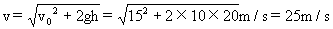 落地时小球的速度大小为