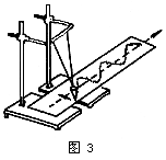 演示二:让砂摆振动,同时沿着与振动垂直的方向匀速拉动摆下的长木板(即平板匀速抽动实验,如图3所示)。