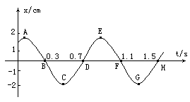 ②t=0时刻从振动图象看,x=0,质点正摆在E点即将向G方向运动。