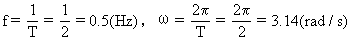 例:求出上图振动物体的振动频率,角速度及t=5s时的即时速度。(请同学计算并回答)
