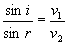 ①折射定律:入射线、法线、折射线在同一平面内,入射线与折射线分居法线两侧.入射角的正弦跟折射角的正弦之比等于波在第一种介质中的速度跟波在第二种介质中的速度之比