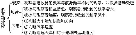 ⑶观察者相对于介质不动,当波源接近观察者时,观察者接收到的频率增大;波源远离观察者时,观察者接收到的频率减小.