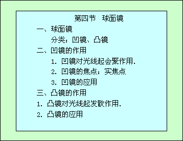 说明:凸镜的虚焦点不要求,对基础较好的学生可根据光路图与凹镜进行简单对比.目的在于加深对凸镜实焦点的理解.