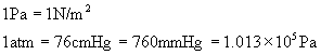 压强的单位有:Pa、atm、cmHg、mmHg等,它们间的换算关系为: