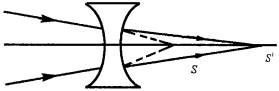 凹镜对光的发散作用是表明光通过凹透镜以后会更散开一些,但是散开不一定不能会聚,如下图所示,从左侧来的两束光由于凹透镜的作用没有在S点会聚,而是在S′会聚,它减弱了入射光的会聚程度.