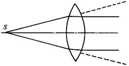 凸透镜对光的会聚作用是表明光通过凸透镜以后会变得收拢些,但是并不意味着一定会聚于一点.如下图所示,以S点发出的光是发散光束,光经过凸透镜折射后仍是发散的,并不能会聚,凸透镜在这里的作用只是减弱了它的发散程度.