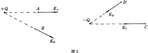 例 在图2中标出A、B、C、D四点的电场强度的方向.