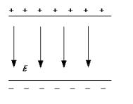 (教师出示图片)为了方便研究,我们选用匀强电场:平行两个带电极板之间的电场就是匀强电场.