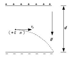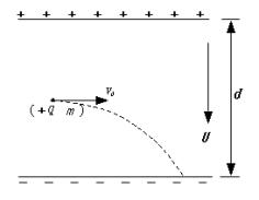 ,板间电压为U,带电粒子质量为m,带电量为+q.分析带电粒子的运动情况: