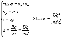 例题讲解:已知,平行两个电极板间距为d,板长为l,初速度