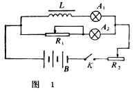 教学用具:演示自感现象的示教板(有铁心的大线圈、滑线变阻器、小灯泡、电池组、电键)
