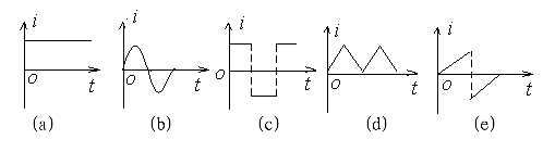 大小和方向都随时间作周期性变化的电流叫做交变电流,简称交流.如图所示(b)、(c)、(e)所示电流都属于交流,其中按正弦规律变化的交流叫正弦交流.如图(b)所示.而(a)、(d)为直流,其中(a)为恒定电流.