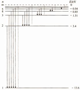 明确:一个原子可以有许多不同的能量状态和相应的能级,但在某一时刻,一个原子不可能既处于这一状态也处于那一状态.如果有大量的原子,它们之中有的处于这一状态,有的处于那一状态.氢光谱的观测就说明了这一事实,它的光谱线不是一个氢原子发出的,而是不同的氢原子从不同的能级跃迁到另一些不同能级的结果.