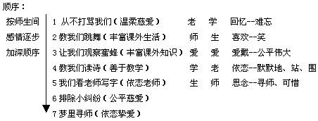 (1—4、6写师爱生,5、7写生爱师,其中有互爱,6、7是重点)这里重点让学生理解课文如何围绕中心选材。