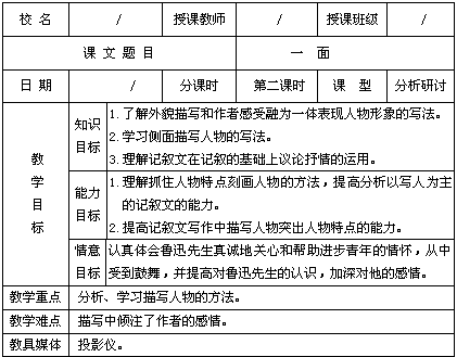 《一面》教学设计方案(多媒体课)