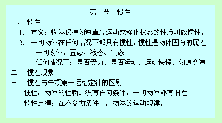 惯性是自然界中的物体所具有的一种性质,这种性质表现为物体总要保持原来的运动状态,即静止或匀速直线运动状态;而惯性定律是一条客观规律,这一规律说明了正是由于物体具有惯性这种性质,所以当没有外力改变物体运动状态时,物体将保持原来的运动状态,即静止或匀速直线运动状态。因此,惯性和惯性定律是完全不同的两回事,前者是物体具有的一种性质,后者是物体在不受力时遵循的一条客观规律。