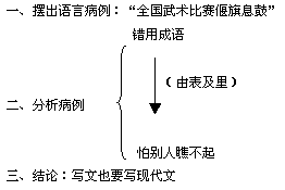 第二部分(1一5节)本论,分析病例指出爱用成语是怕让人瞧不起。可分为两个层次。
