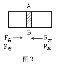 ①演示双手分别握着的两个圆柱体所夹硬纸片AB静止在竖直平面内,提问:硬纸片静止时,两边圆柱体对它的水平力以及对它的水平压强的大小有什么关系?(边听学生回答边板画图2)