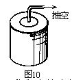 【演示8】(如图10所示),取一带阀的空油漆桶,首先让一个同学站在桶上压一压,没发现任何形变.将阀门接抽气机抽出桶内的空气,将发现油漆桶逐渐变瘪了.