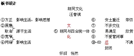 2.学生朗读课文6-9段,教师配乐范读10-12段,概括胡同文化的特点。