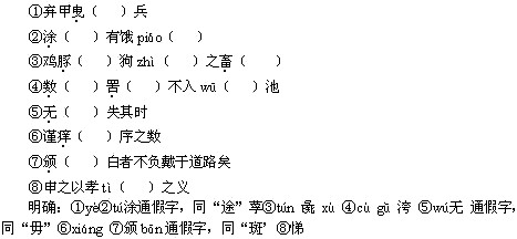 根据汉语拼音写出相应的汉字,给加点字注音,是通假字的要注明。