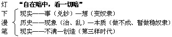 小结:中国的历史在“一治一乱”中循环发展,中国的老百姓也在一会儿不如牛马一会儿略如牛马中艰难跋涉。“三千余年古国古”,历来所闹的就不过是这样一个小玩艺。先生曾尖锐地指出“轿夫(老百姓)如果对坐轿的人(统治者)不含笑(作乱的人),中国也早已经不是现在的中国了”。
