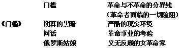 1.联系时代背景和作者的写作意图,领悟俄罗斯女郎、门槛等的象征意义。