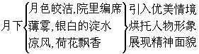 第2段通过水生嫂眼光的引示,展示了院内院外的基本色调:洁白、银白、透明。水生嫂身子下面编成了一大片席,在皎洁的月光下,“她像坐在一片洁白的雪地上,也像坐在一片洁白的云彩上”。这两个充满想象的比喻,把水生嫂的劳动场面诗化了。