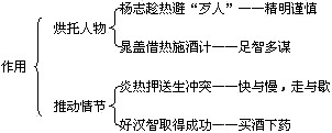 3.场面:小说写两个场面,即押送场面和失陷场面。前者为后者作铺垫。写杨志与都管、虞候的矛盾,不但令晁盖一行有机可趁,而且写出杨志失败之必然。
