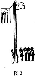 定滑轮在生产、生活中比较常见,比如每周一早上升旗时就要用到滑轮.目的就是要改变动力的方向,人站在地上就可以把国旗升到旗杆顶.(图2)