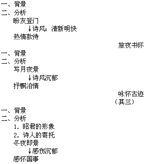 小结:作者借律诗这一抒情诗体,用炼字传情、选用古时题材和创设意境等方法,使其诗囊括了深刻的社会现实和深沉苍凉的感情,形成唐衰落时期特别的沉郁风格。