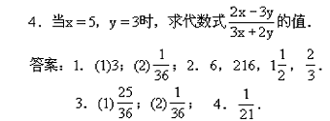 其次,结合学生的回答,教师指出:(1)求代数式的值,就是用数值代替代数式里的字母,按照代数式的运算顺序,直接计算后所得的结果就叫做代数式的值;(2)代数式的值是由代数式里字母所取值的确定而确定的.