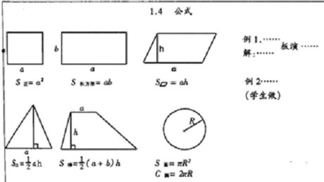 1.数学方法:引导发现法,以复习提问小学里学过的公式为基础、突破难点
