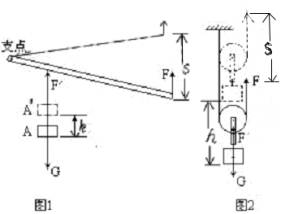 图2所示是使用动滑轮提升重物G,重物升高的距离为h,人手作用在绳端的A点,拉力大小是F,A点升高的距离是s.如果人直接提着重物G匀速上升.所用的拉力应等于G,这过程中,人对重物所做的功