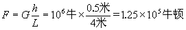 【例题】 工人在劳动中为了方便,利用一个斜面将一个重为106N的机座升高0.5m,斜面长为4m,若不计摩擦阻力,机座在斜面上作匀速直线运动,求沿斜面对机座的拉力有多大?