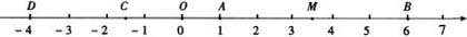 ①说出下面数轴上A、B、C、D、O、M各点表示什么数?