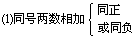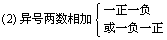 绝对值不相等的异号两数相加,取绝对值较大的加数的符号,并用较大的绝对值减去较小的绝对值,互为相反数的两个数相加得0.