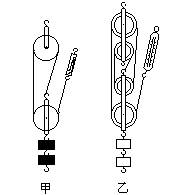 学生分组实验器材:刻度尺、钩码、弹簧秤、铁架台,一个定滑轮和一个动滑轮组成的滑轮组,两个定滑轮和两个动滑轮组成的滑轮组,长约2米的细绳.