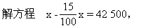 例2 某面粉仓库存放的面粉运出 15%后,还剩余42 500千克,这个仓库原来有多少面粉?