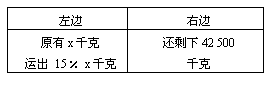解:设原来有x千克面粉,那么运出了15%x千克,由题意,得