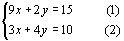 【教法说明】第(1)题可以用解方程组的方法得解,也可以把四组值分别代入原方程组中,利用检验的方法解,这道题能训练学生思维的灵活性;第(2)题通过分析,学生可得方程组