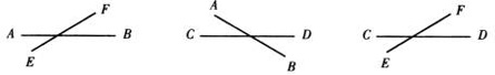 【教法说明】演示相交线的模型,目的是使学生领会研究相交线为什么要研究它们相交所成的角.