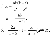 bx-b2=2ab-ax+a2(去分母注意“2”这项不要忘记乘以最简公分母.)