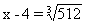 简单的三次方程,所以像第(2)小题,我们要把(x-4)看成一个整体,依然转化成为x3=a的形式,再由立方根定义去解.