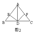 例2:如图2,△ABC中,AD是它的角平分线,且BD=CD,DE、DF分别垂直于AB、AC,垂足为E、F.
