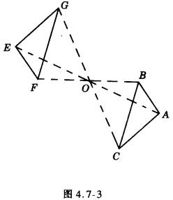 练一练:在图4.7-3中,已知△ABC和△EFG关于点O成中心对称,分别找出图中的对称点和对称线段。