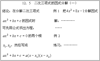 4.通过二次三项式因式分解方法的推导,进一步向学生渗透认识问题和解决问题的一般规律,即由一般到特殊,再由特殊到一般;