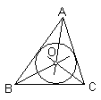 (1)到三边的距离相等; (2)OA、OB、OC分别平分∠BAC、∠ABC、∠ACB; (3)内心在三角形内部. |